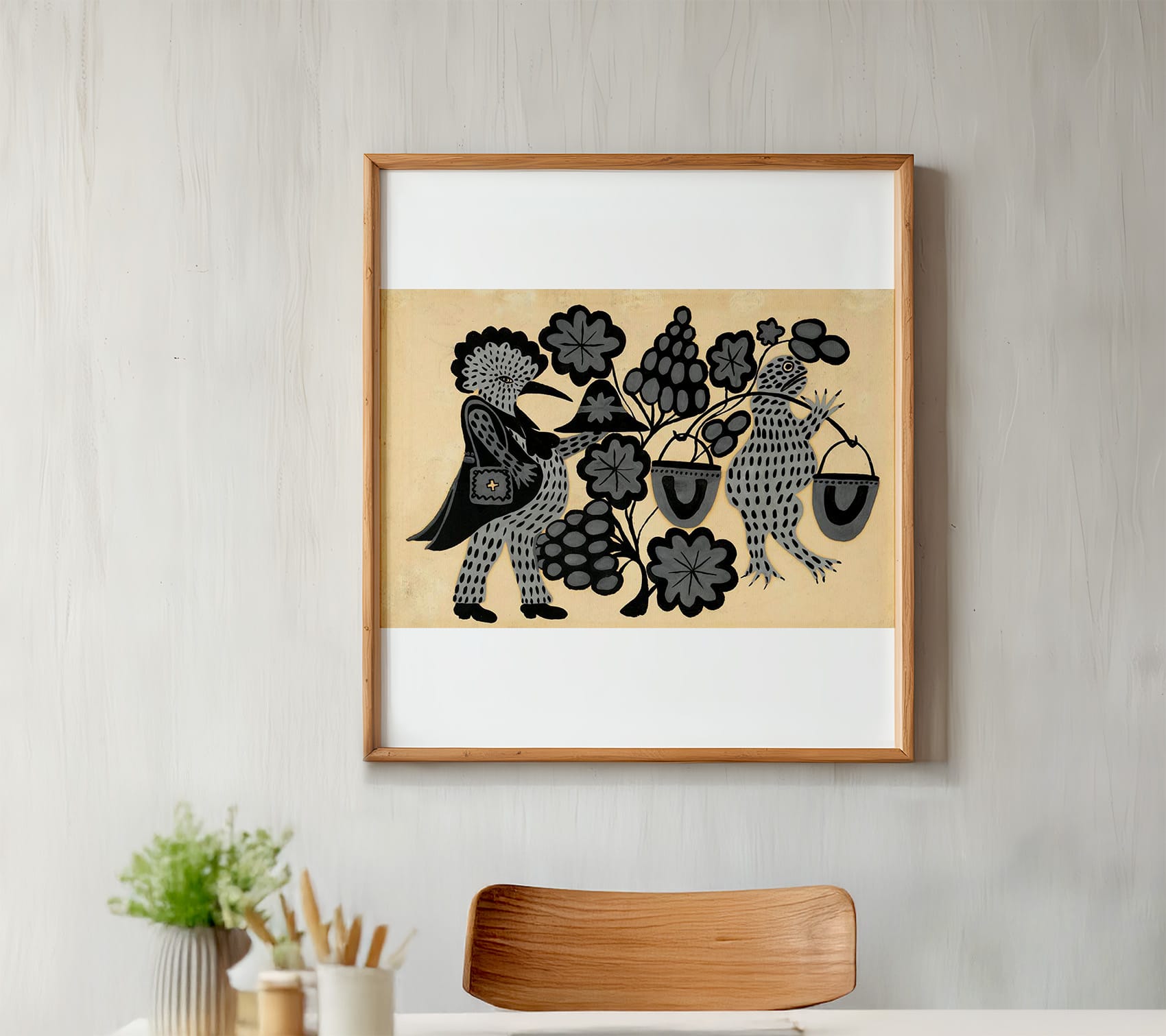 The oversized unisex t-shirt based on Maria Prymachenko’s art piece “Fairytale”, 1937. The item was a part of the TSUM drop created in the frame of Prymachenko Art Season in TSUM Kyiv, in 2024. In our interpretation of the artist’s painting, her signature expressive brushstrokes went beyond Frog’s contours and turned into sunflower seeds, creating a whole new context.