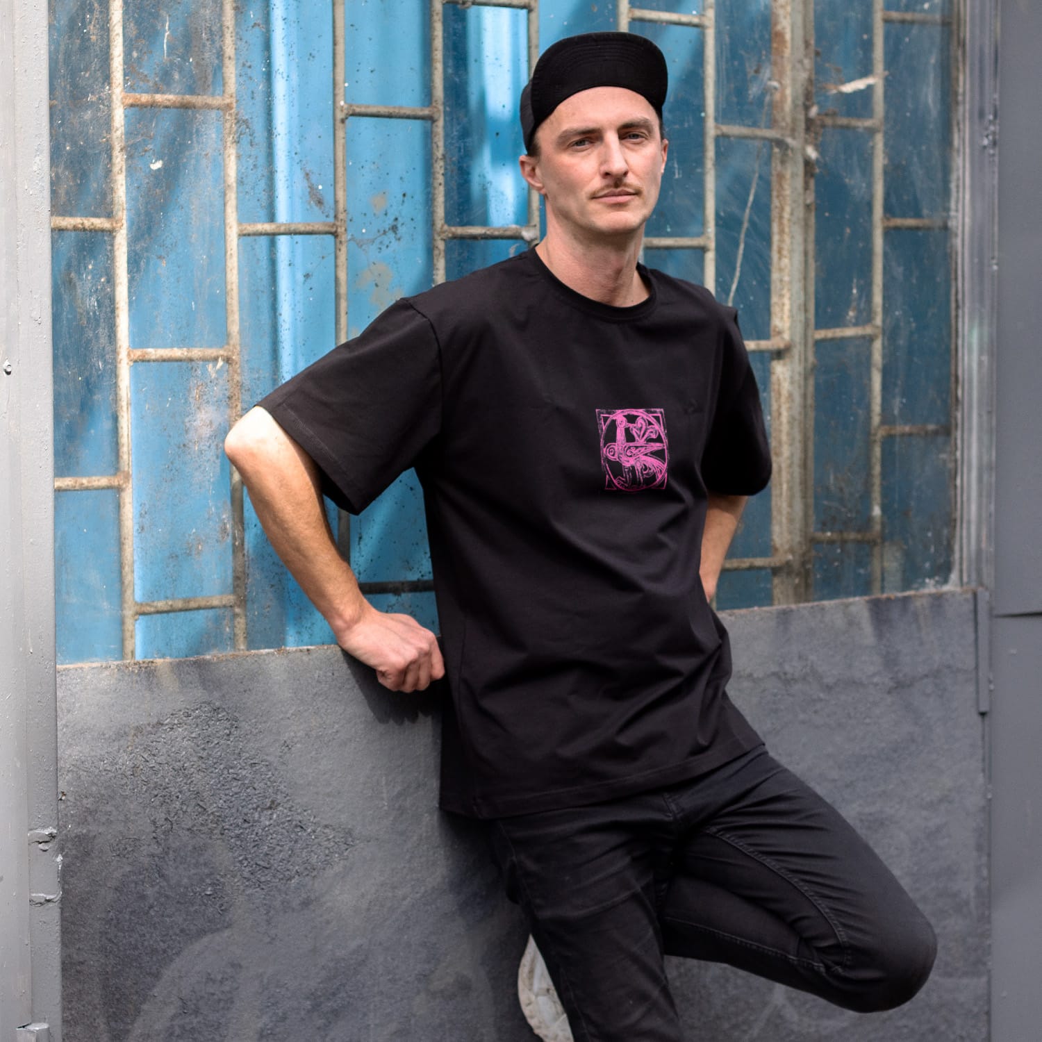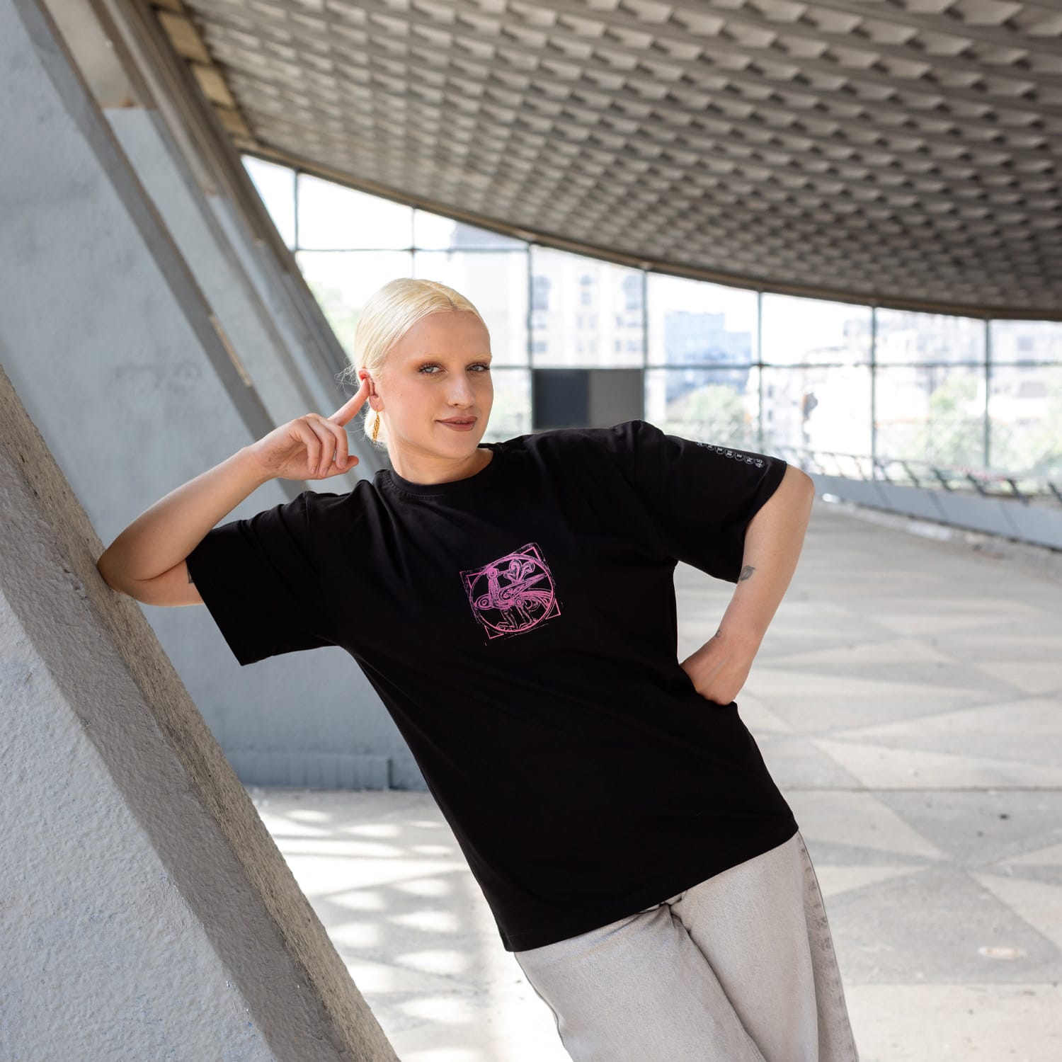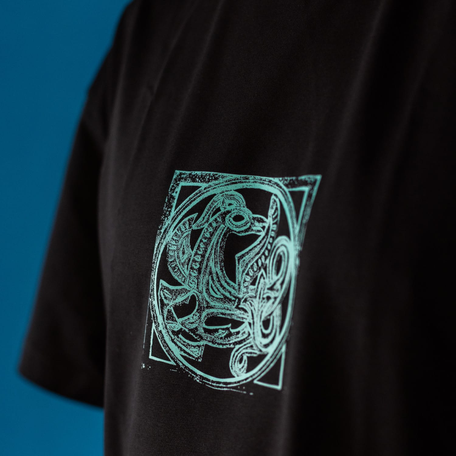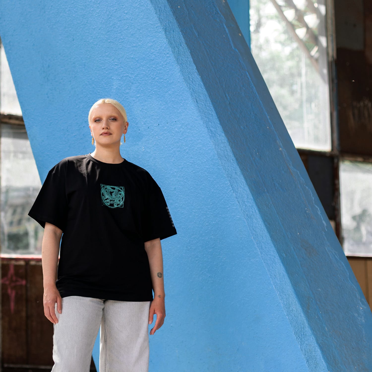 The series of oversized unisex t-shirt dedicated to the 45 anniversary of the Zhitniy Market in Kyiv (Ukraine). The modern Rye Market (Zhytnyi Rynok) building is a prominent example of Soviet-era modernist architecture, built between 1974 and 1980 by architects Valentyn Shtolko and Olha Monina. The building recently gained the status of a newly identified cultural heritage site. The t-shirts’ prints depict mythological creatures from metal grilles on the back side of the building by an unknown artist.